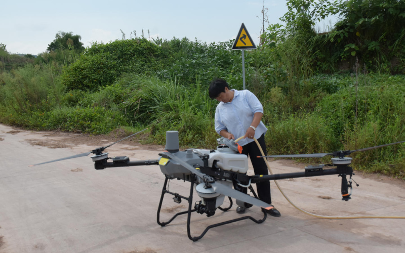 在田间,一幅科技助力农业的画面正在上演。伴随一阵“嗡嗡”声,一架满载混合肥液的无人机在技术人员娴熟操控下腾空而起,沿着稻田轨迹笔直匀速飞行。机身下方,雾状复合肥液均匀洒落田间,为长势喜人的再生稻精准输送“营养大餐”。兑药、装药、起飞、喷洒,整套操作行云流水,不仅展现出科技农业的高效便捷,更让传统农业生产模式焕发新活力。