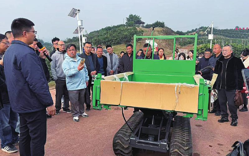 痛点  传统果园大多密植密闭,机器进不去、作业效率低,导致农机难用和人工成本攀升对策  改造老果园,推广密改稀、暗沟排水、高光效矮化树形等技术;运用智能割草机、履带式转运机、分体式气爆松施机等替代人工四川农村日报全媒体记者 文涵 文/图  “看到为柑橘园除草、松土、吊运的各类农机,尤其是智能割草机,我真想马上入手一台!”近日,在自贡市富顺县狮市镇懋丰园柑橘基地,科技下乡万里行活动——柑橘高效栽培技术及装备现场演示培训顺利举行。果农袁光才观摩后,望着现场的新式农机,话语里满是期待。  在培训现场,智能割草机、载重无人机、分体式气爆松施机等智能农机轮番展示,吸引了市、县农业农村部门负责人、农机企业代表及种植户等80余人参加。工作人员操作履带式转运机  “富顺县是柑橘主产区,截至2024年,全县种植面积达24万余亩、年产量超15万吨。但当前也面临着果园‘用工难、用工贵’等情况,这已成为制约产业发展的普遍问题。”“科技下乡万里行”专家服务团48团首席专家祝进告诉记者,“不过,全县果园综合机械化率仍有较大提升空间,农艺与农机的深度融合才是破局关键。”  对这套“双农方案”,祝进作了详细说明。  “传统果园大多是密植密闭的种植模式,机器进不去、作业效率低,栽培和农机这两个‘齿轮’扣不上,是导致农机难用和人工成本攀升的重要原因。”祝进解释道。针对这一问题,团队因地制宜推广老果园改造技术,密改稀、暗沟排水、高光效矮化树形等技术的应用,优化了果园空间结构,既能让农机灵活进场替代人工,又能提升果实品质,真正实现减工增效。  在农艺结构不断优化的基础上,各类适配丘陵地形的农机在现场“大显身手”,展现出强大的场景适应性。  四川70%以上为山区丘陵地形,果园作业常受限制,而现场演示的农机装备精准破解了这一痛点——履带式转运机轻松爬坡上坎,即便在坡度较大的果园也能平稳穿梭。载重无人机则凭借稳定的吊运能力,有效破解了“农资上山、果实下山”的运输难题。  在专业技术讲解环节,四川省农业机械科学研究院正高级工程师万勇重点推介了分体式气爆松施机,“它能够精准破解土壤板结导致的水肥下渗难、根系上浮、树体易老化等一系列种植痛点。”  “未来,我们还将顺应人工智能的发展趋势,继续深化农机与农艺融合,让果农借助专业化社会化服务轻松种地,成为职业农民。”祝进对未来的发展信心满满。