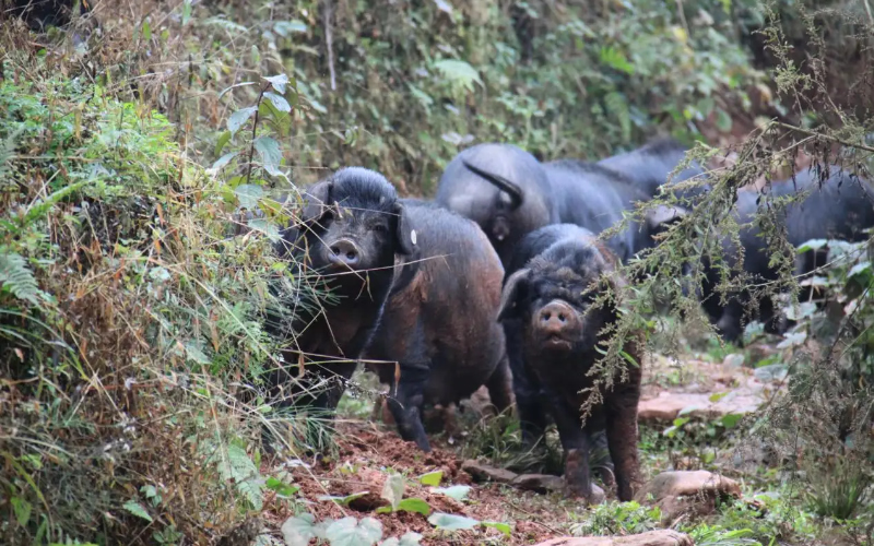 “乌金猪”特指产自中国云、贵、川交界乌蒙山区及金沙江流域的一个优秀地方猪种,以其卓越的肉质和悠久的历史而闻名,被誉为“高原良种,国之瑰宝”。民主镇光华村,乌金猪在自由觅食“喝的是山泉水,吃的是中草药,长的是健美肉。”12月7日,在民主镇光华村的乌金猪(凉山猪)遗传资源备份场,600头乌金猪正漫步山间,自由觅食。管理员吉胡罗军说:“天气好就放养,天气不好则在圈内喂玉米面、猪草等。”此外,场内还有300头种猪正在接受科学喂养。相距50公里的劳动镇柏香村,另一处乌金猪(凉山猪)原种场和遗传资源保种场里,1256头乌金猪同样茁壮成长。“寻找儿时的味道”金凉山农业开发有限公司负责人罗斯贵回忆,2009年,为“找回记忆中的味道”,公司启动了乌金猪(凉山猪)遗传资源保护和产业化开发工作,邀请四川农业大学专家深入大凉山腹心地区,收购具有乌金猪(凉山猪)典型外貌特征的猪只组建保种群,并开展了长达十年的提纯、保种和选育提高工作。农业专家到大凉山收购猪种2011年,公司在劳动镇柏香村建立乌金猪(凉山猪)原种场。“从几十头起步,通过持续组群、提纯、选育、淘汰,品种逐步稳定。”2013年,该场成功申报为四川省乌金猪(凉山猪)遗传资源保种场,成为全省首家且唯一的乌金猪(凉山猪)保种单位。成果与助农相融17年来,金凉山在乌金猪(凉山猪)保护与研究上硕果累累:先后获评国家及省级示范场、四川省科技进步奖一等奖;取得国家发明专利及实用新型专利十余项;在《Plos One》《遗传育种》等国内外核心期刊发表论文二十余篇,填补了乌金猪(凉山猪)系统研究空白;乌金猪亦被列入国家级遗传资源保护名录。劳动镇柏香村乌金猪(凉山猪)原种场2016年起,在农业部门协调下,金凉山采取“公司+合作社+农户”模式,向贫困户发放良种母猪。截至目前,已累计发放乌金猪(凉山猪)种母猪1000余头,覆盖全县15个乡镇近千户农户,为巩固脱贫攻坚成果、推进乡村振兴注入产业动力。高端市场与未来展望“能闻到肉香味,就像儿时的味道。”罗斯贵介绍,乌金猪肌内脂肪含量高,肥而不腻,特别适合做白肉、回锅肉和红烧肉。金凉山公司当前年出栏乌金猪约1500头,年产值达600万元。鲜肉价格每斤32至48元,腊制品价格每斤68至120元,主要面向高端客户和餐饮市场,产品销往全国。“能把老祖宗留下的宝贝传承下去,我倍感欣慰。”罗斯贵表示,下一步将全力创建国家级遗传资源保种场,让这份自然馈赠和乡土记忆持续飘香。(图文由马边彝族自治县融媒体中心 杨红梅提供)